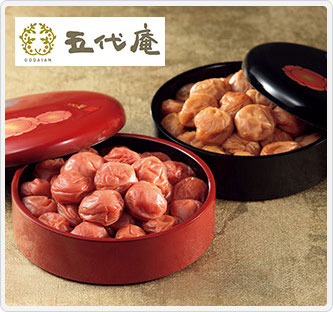 紀州黒江漆器の器に2種類の梅干を詰め合わせたセットです。天保五年の創業以来170余年の歴史を誇り、栽培から加工まで一貫して行っている〔五代庵〕。モットーは「安心・安全・健康、そして作り手の心が伝わる物づくり」です。例えば梅干作りの命となる水は、紀州備長炭できれいにろ過された清水を使用するというこだわりぶり。老舗ならではの職人の技が味わいの秘密です。