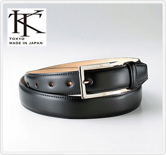 台東区浅草にある〔ノット〕のベルト。〔ノット〕は創業60年の老舗ベルトメーカーの流れを受け継いでいます。主に国内での生産にこだわり、熟練の職人が細部にまでこだわってベルトをつくっています。このベルトは日本国内でなめされた牛革を使用しており、表材と裏材の間に心材を入れて盛り上げることで厚みを出し、高級感を出しています。ベルトのコバ(両サイドの断面)の処理にもこだわっており、触った時の手触りが滑らかになるよう仕上げられています。