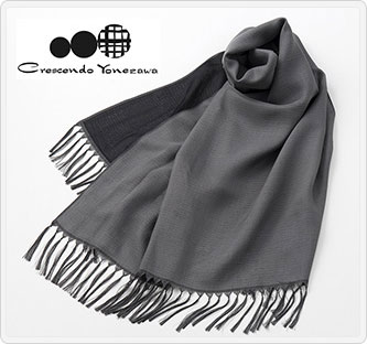 日本最北の繊維産地山形県米沢市で、その伝統ある素材と技術を駆使して作られる米沢織のストール。シルクにカベ糸と呼ばれる特殊な撚糸をした糸を使用し、職人が一枚一枚丁寧に織り上げました。グレーとブラックのリバーシブルは、ブラックフォーマルはもちろん、普段はグレーをメインに羽織ったり、両方の色が見えるように首に巻いたりとマルチに使用できます。
