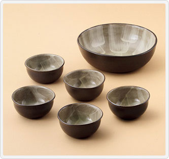 サイズ(約):大鉢=(直径22×高さ7.5cm)×1、小鉢=(直径10.5×高さ5cm)×5