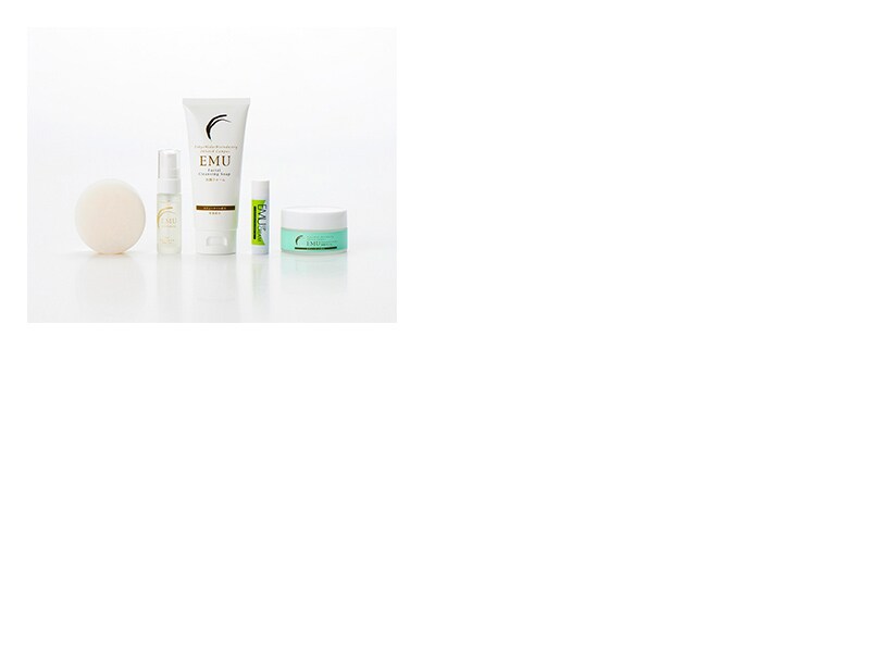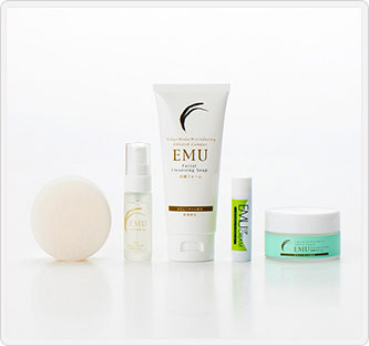東京農大との共同研究により、網走市で育成して国内で精製した100%国産のエミューオイルから生まれたスキンケア商品。エミューオイルにはオレイン酸・リノレン酸・リノール酸(オメガ脂肪酸)が理想的なバランスで配合され、その保湿性と抗炎症成分はトラブル肌にもやさしく、化粧品として理想的な効果があります。