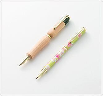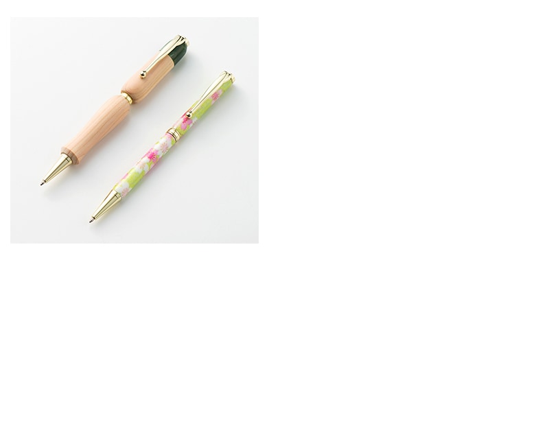 材質:美濃和紙ボールペン=和紙(アクリル樹脂コーティング)・軸=天然木、岐阜県産材ボールペン=天然木(長良すぎ)