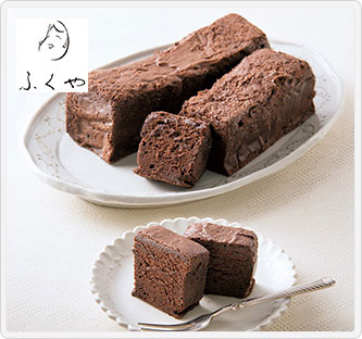 通常のケーキを焼成するよりも低い温度で1時間もの間じっくり焼成した、和菓子職人の遊び心から生まれたしっとり食感のケーキ。選び抜いたクーベルチュールチョコレートを使用するなど原料にもこだわり、素材のおいしさを存分に引き出しています。