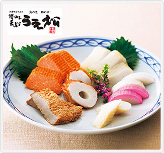 明治15年(1882年)創業の讃岐天ぷらの老舗〔うえ松〕。一般的には魚のすり身を油で揚げたものを「さつま揚げ」と呼びますが、讃岐では甘さを抑えて魚の味をいかしたすり身の揚げものを「讃岐天ぷら」といいます。130余年の長い年月にわたる讃岐ならではの味を脈々と受け継ぎ、甘さを抑え、魚本来の味を素直に生かした上質のすり身で作った本品は、ソフトな歯ごたえ、コシのよさ、刺身感覚のおいしさをお楽しみいただけます。