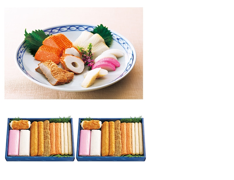 内容量:細天120g(3本入)×2、平天100g×4、赤えび天110g×4、じゃこ天40g×6、竹ちくわ80g×2、かまぼこ(紅・白)各120g×2