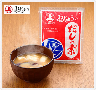 創業明治17年、瀬戸内の古都尾道の鰹節屋「まるじょう」。だしを知り尽くした鰹節屋がつくった「だしの素」です。鰹の風味と旨みが生きています。
