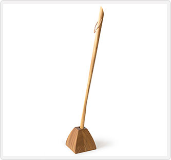 天然木ケヤキ無垢材のロング靴ベラ77cmタイプ。神社、仏閣の彫刻を手掛ける伊川彫刻店の三代目・彫昌が一つ一つ手作りで仕上げた靴べらとベースのセットです。天然木ケヤキ無垢材から削り出した靴ベラは、しっくりと手に馴染み末永くご愛用いただける一品です。