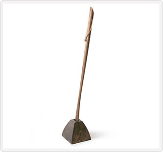 天然木ウォールナット無垢材のロング靴ベラ77cmタイプ。神社、仏閣の彫刻を手掛ける伊川彫刻店の三代目・彫昌が一つ一つ手作りで仕上げた靴べらとベースのセットです。天然木ウォールナット無垢材から削り出した靴ベラは、しっくりと手に馴染み末永くご愛用いただける一品です。