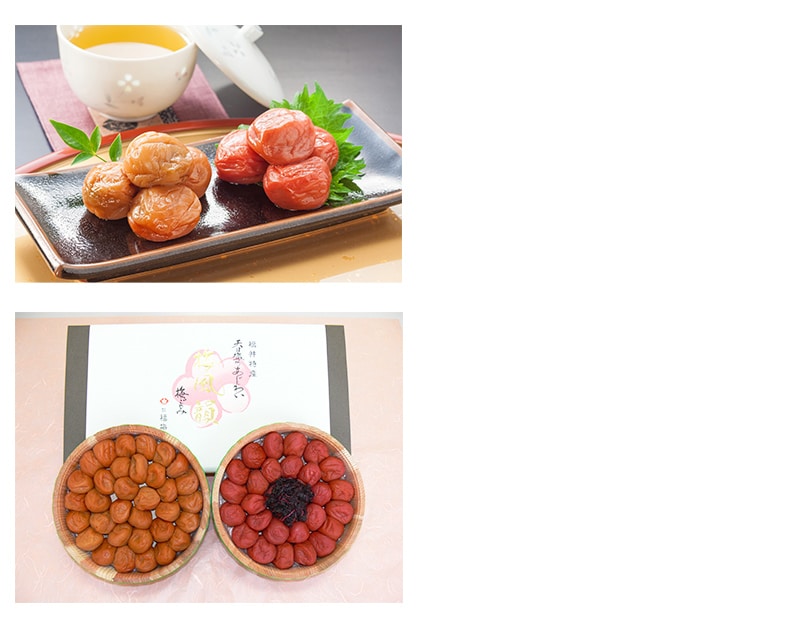 内容量:うす塩梅干(塩分約10%)・しそ漬梅干(塩分約15%)各750g