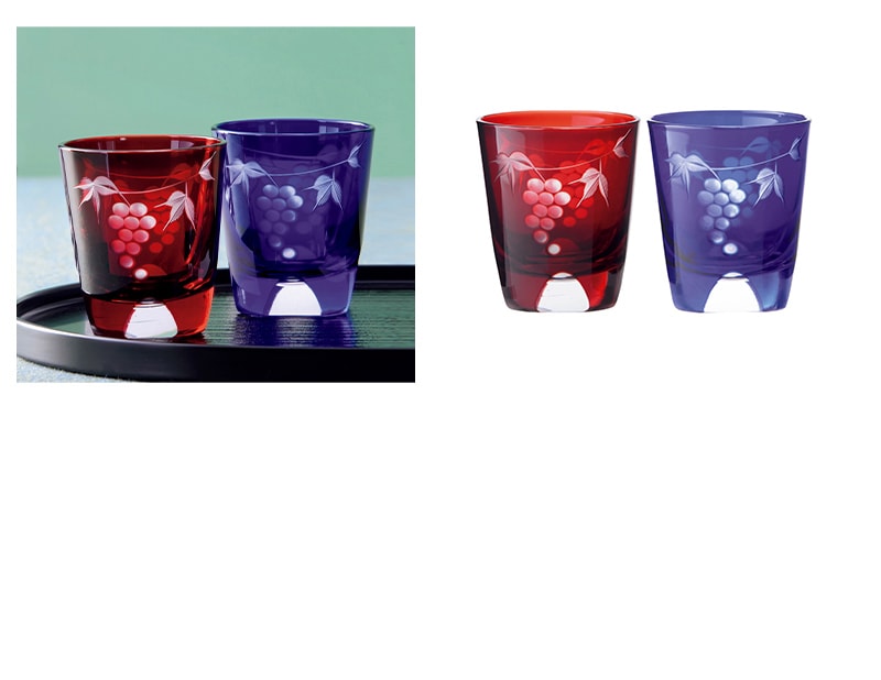 サイズ(約):(口径5×高さ6cm)×2容量(約):50ml材質:ソーダガラス(色被せ)生産国:日本製