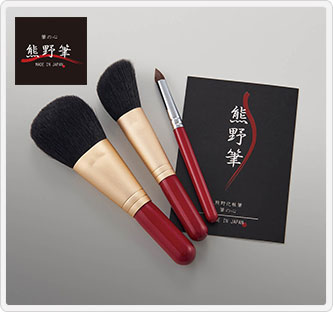 世界に誇る熊野の化粧筆は筆司の手作りによる高品質化粧筆です。穂先をカットしない熊野の化粧筆は、穂先がやわらかくやさしいので肌触りが違います。メイクのノリや持ちも断然違う「本物」の逸品です。