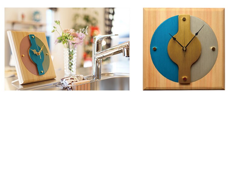 「色」「木」「質」3つのこだわりで生活空間に癒しをもたらし、心安らぐ檜の香りと、気品ある質感に癒しを与えるカラーリングを施した立体感のあるインテリア時計です。アルミ材の廃材を活用したアップサイクリング商品は、廃材を用いることでCo2削減・環境負荷削減活動の一環ともなります。