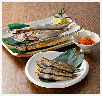 内容量:さんまささ干4尾、あじささ干・梅海干×各3尾、めひかり丸干し8尾、贅沢うにみそ130g