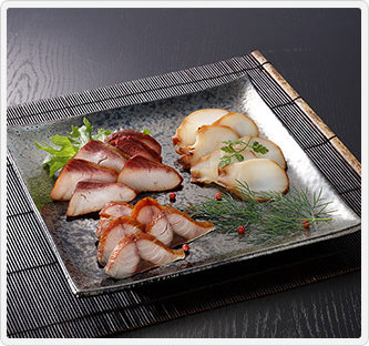 日本近海で漁獲された魚を調味料に漬け込み、数日間熟成させた後に桜チップで燻煙処理をしています。熟成された旨みと桜チップの芳醇な香りが漂う本格的なお魚ハムです。お酒のおつまみはもちろん、サラダのトッピングやサンドイッチの具材にしていただくのもおすすめです。