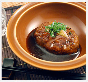 敷居を高くしたくないから、「日本料理」とは書かずに「和(なごみ)料理」と表現したカジュアルに本格日本料理を味わえる神戸元町の〔和(なごみ)料理 みのり〕。松阪牛や神戸牛になる「もと牛」として有名な但馬牛、ヘルシーでさっぱりとした神戸ポークを使った煮込みハンバーグ。山椒が味のアクセントとなります。