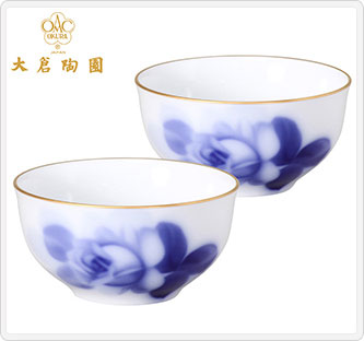 一輪の大きなバラが印象的なデザインのブルーローズは、1954年の誕生以来時代を経ても愛され続けているシリーズです。 大倉陶園独特の技法「岡染め」で本焼成した白生地にコバルト絵具で絵付けをし、再度1460度の本窯で焼成します。この間コバルトの青色は釉薬と柔らかに融合し、深みと優しさを加えながら美しい文様を作り上げます。 縁は、職人が筆で一点一点金を手塗りし、白磁に美しい輝きを添えていきます。