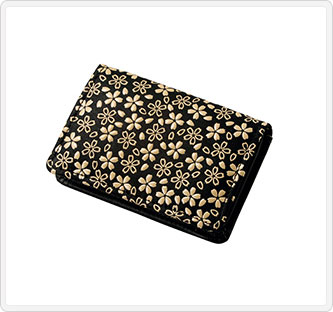 この商品は、その流れを汲む江戸印伝を使用しております。柄には日本人の慣れ親しんだ桜吹雪を使用。印傳以外の材料はソフトな牛革を使用し、手触りよくなってます。