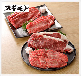 内容量:ロースステーキ320g、すき焼用肩ロース・焼肉用バラ・しゃぶしゃぶ用肩各250g