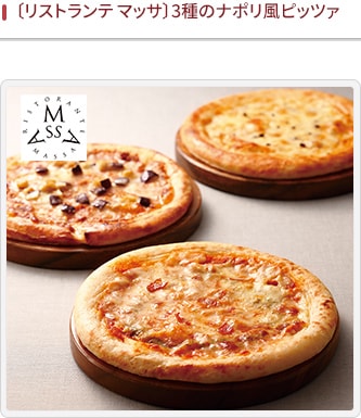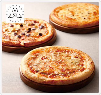 2000年に東京・恵比寿で開店した、創作イタリアンの人気店〔リストランテ マッサ〕。ダイナミックで繊細な味付けのコース料理は、多くのファンから「また食べたくなる」と支持されています。今回監修したのは、ミミのもちもち感が特徴のナポリ風クラストを使い、チーズ4種に黒トリュフをあしらったピッツァ、ピリッとスパイシーなボロネーゼソースのピッツァ、しっかりとチーズの味を楽しめるマルゲリータピッツァの3種類。生地の甘みまでお楽しみいただけます。