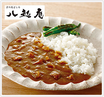 京都に店を構え約45年間鳥料理専門店として著名人にも有名な〔京の鳥どころ 八起庵〕。自慢の和風だしで仕上げ、隠し味の一味唐辛子がこだわりのカレーは、カレーうどんとしてもおいしくお召しあがりいただけます。