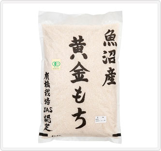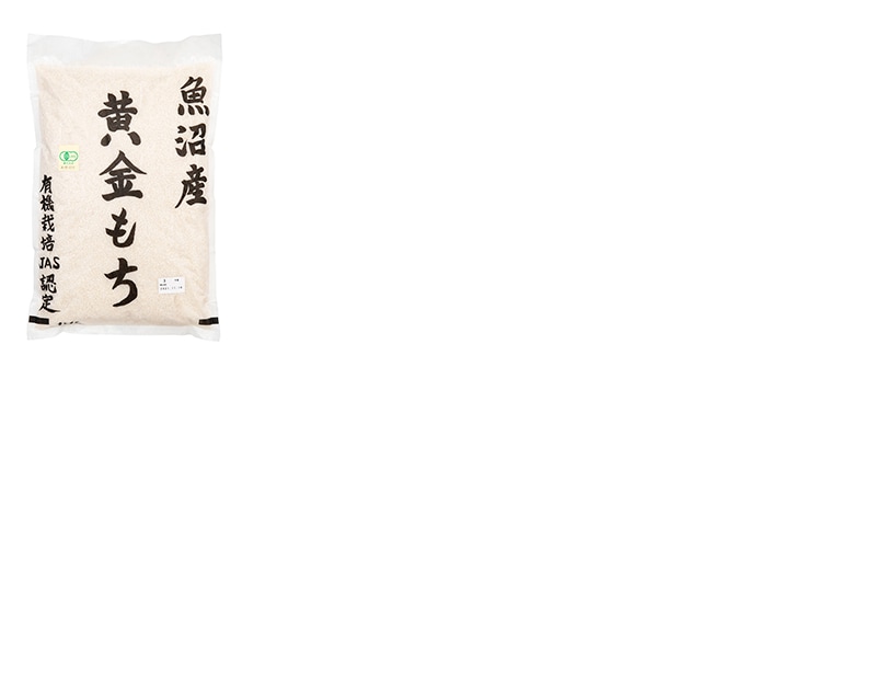 米処魚沼の地でJAS認定有機栽培したこがねもち米です。魚沼津南地域の寒暖差の激しい気候と有機栽培によって、こがねもち米本来の大きな特徴であるきめ細かさと強いコシを引き出し、なめらかで舌ざわりが良く、もっちりとした炊きあがりのお米になります。