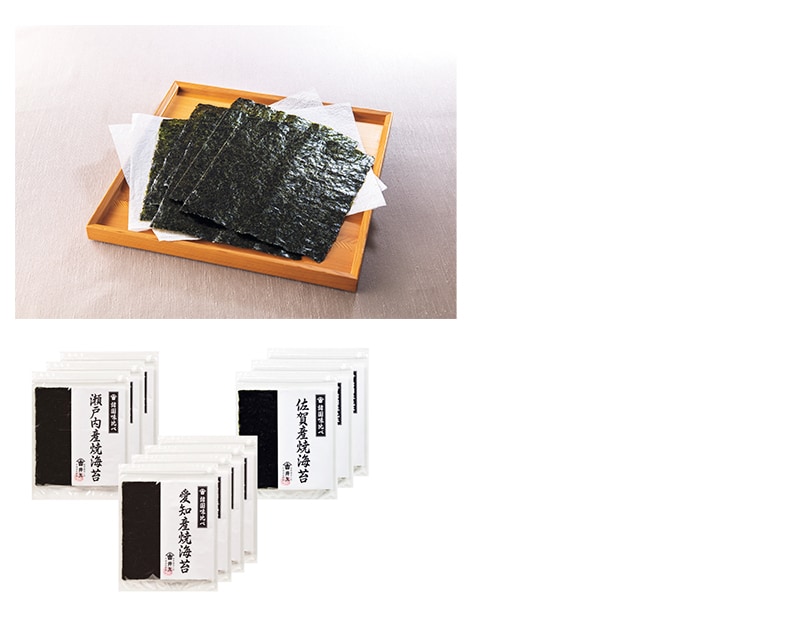 内容量:焼海苔(佐賀県・瀬戸内)各板のり10枚×3、焼海苔(愛知県)板のり10枚×4