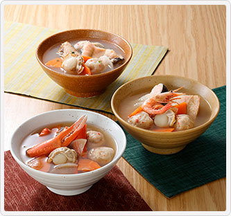 北海道産の秋鮭やほたて貝を使った濃厚な味噌味の「石狩鍋」、ベニズワイガニを使用した醤油味の「かに鍋」、出汁の風味を味わえる塩味仕立ての「鮭うしお汁」と、レンジで温めるだけですぐに食べられる本格海鮮鍋の詰合せです。一人分なのでいつでもお手軽にお楽しみいただけます。