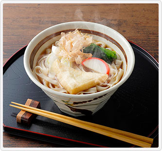 明治10年に創業した〔なごやきしめん亭〕は、味とのふれあい・心と心の絆を大切にしています。手延べ製法のきしめんは、何度も延ばしと熟成を重ねて作るため、コシのある麺に仕上げました。温かい麺はもちろん、ざるきしめんもおすすめです。