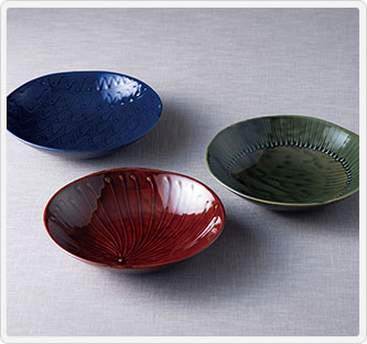 岐阜県東濃地方にある、多治見市・土岐市・瑞浪市・可児市・笠原町の4市1町で生産されている美濃焼。美濃には良質の粘土が多く、平安時代より盛んに焼物が生産されていました。その後も発展を続け、現在では全国総生産の約50%のシェアを誇っています。シンプルな形状と色味のため、和食はもちろん、どんな料理にも合う、美濃焼の深皿3枚セットです。