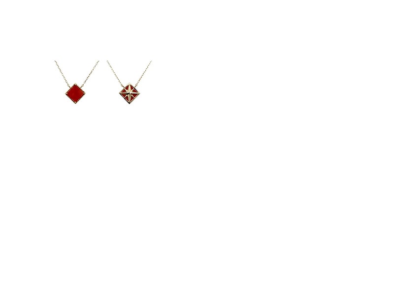 自然が織りなす特徴的な色合いは人工的には生み出すことはできません。シンプルなスクエア形のネックレスは宝石珊瑚の美しさをよりナチュラルに楽しめます。