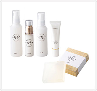 内容量(約):化粧水120ml、美容液30ml、乳液100ml、美容石けん100g、ハンドクリーム30ml生産国:日本製