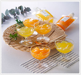 厳選した愛媛県産の柑橘果汁をふんだんに使用したゼリー。香料、着色料、保存料不使用。まるで果実をそのまま食べているかのような濃厚な味わいのゼリーで、お子さまからお年寄りにも食べやすく、スプーンも不要でお気軽にお召しあがりいただけます。