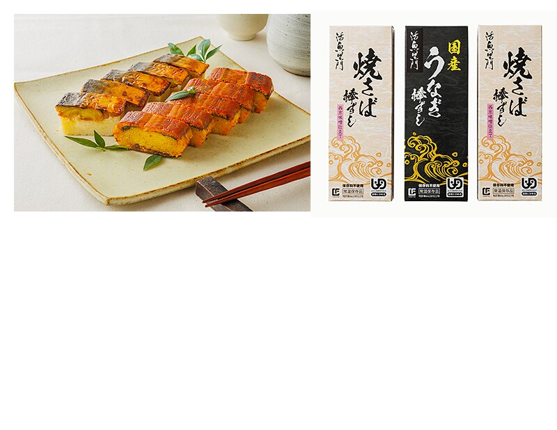 内容量:焼さば棒寿司280g×2、国産うなぎ棒寿司280g原産地:米=福井県産加工地:福井県アレルギー:小麦賞味期間:出荷日より常温で6カ月保存方法:常温(直射日光を避け、涼しいところで保管)
