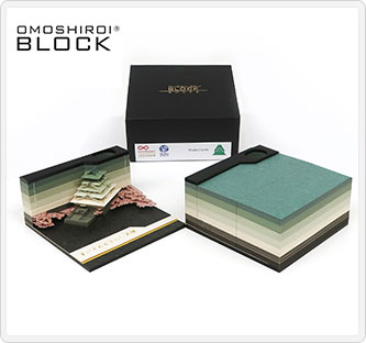 Memory×Moment×彫刻=MeMo彫(メモ帳)。 記憶をかたちに刻むメモ帳です。メッセージカードにも大阪城にちなんだシルエットによる演出が盛り込まれています。2021年ドバイ万博の日本館にて海外VIPへの記念品に採用されました。アクリルケース付属。