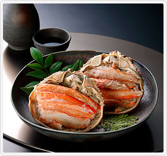 越前を代表する冬の味覚の王者「越前がに」。その雄のずわいがにの身は肉厚でカニ味噌も濃厚です。鮮度高く水揚げされた越前がにのカニ味噌や身を剥き出して、丸ごと甲羅に盛り付けました。