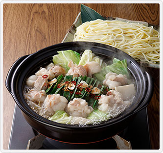 大阪唯一のブランド牛「大阪ウメビーフ」の甘くてプリプリのもつを、こだわり醤油と関西風出汁をベースにした、国産生姜たっぷりの滋味じんわりスープ、国産生絞り柚子たっぷりのさっぱりスープ、2種のお味でお召しあがりいただけます。鍋の〆には国産小麦100%の香り高いオリジナル中華麺をお楽しみください。