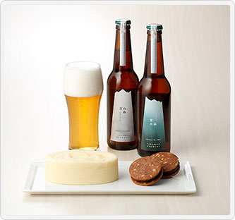 内容量:〔oN CHOCOLATE〕onchocoサンド30g×5、ホワイトショコラテリーヌ230g、〔YUDANAKA BREWERY〕青の森・白の森 各330ml×3