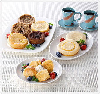 内容量:天然酵母フレンチトースト(プレーン・カスタード・カフェオレ・ロイヤルミルクティー・ココア)・メロンパンnaフレンチトースト(プレーン・カスタード)×各1個、ベーグルdeフレンチトースト(4切入)1個