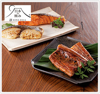 内容量:うなぎ蒲焼2串、キングサーモン西京漬・鰆西京漬各100g