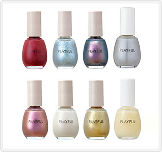 速乾&1度塗りでムラなくキレイに仕上がるプレイフルのネイル。トップコートやベースコートが不要です。コズミックレッド・スターリーブル―・ミッドナイト・ダズルピンク・スノーホワイト・ムーンゴールドの6色と、色変にコーディネートネイルとプリズムモイストコートをセットにしたJALオリジナルのセット。