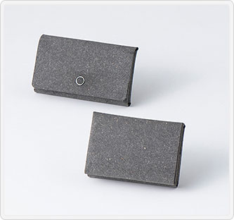 名刺入れ=サイズ(約):6.5×11×厚さ1.5cm素材:ハイブリッドレザー(ゴム70%、革30%)仕様:ホック開閉、名刺入×2生産国:日本製