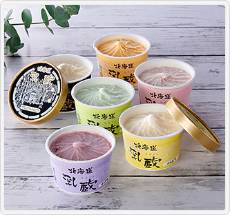 北海道産牛乳や生クリームを使用した6種類のアイスクリーム詰合せ。濃厚な味わいに仕上げた「プレミアムバニラ」、さわやかな甘さの「バニラ」、北海道産メロン果汁を使用した「赤肉メロン」と「青肉メロン」、北海道産いちごの程良い酸味と風味を活かした「ストロベリー」、北海道特産ハスカップの甘酸っぱさと風味が楽しめる「ハスカップ」がお楽しみいただけます。