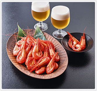 北海道の夏の風物詩でもある、北海縞海老。根室の漁港で水揚げされたものを新鮮なまま塩ゆでし、茹であがったあとで急速冷凍します。殻をむいた中から現れる身は、プリプリとはずむような舌ざわりがあり、甘くて濃厚な味わいです。日本酒はもちろん、白ワインといっしょに召しあがるのもおすすめです。