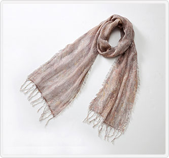 「墨流し染め」は、1300年前の平安時代に貴族の遊びとして水に墨を垂らし流れる様を愛でていたことが起源とされます。その後、墨流し模様を和紙へ写し取り和歌を書くようになり、現在では正絹の着物にその加工が用いられる技術が完成しました。「水に墨(黒=苦労)を流す」の意味合いがあり、縁起を担いだ文様といわれています。描いた文様を、細番手のエジプト綿100%のとても柔らかな二重ガーゼに写し取るのは、熟練した技が必要です。こちらは、淡い色目で孔雀の羽をイメージした柄に染めています。