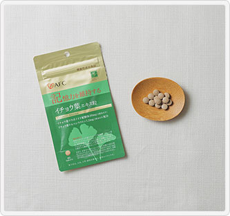 成分のイチョウ葉由来フラボノイド配糖体およびイチョウ葉由来テルペンラクトンは、認知機能の一部である記憶力を維持する機能が報告されています。記憶力が気になり始めた方におすすめです。健康補助食品として1日2粒を目安に、水などでお召しあがりください。