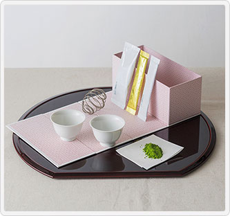 全国茶師九段 山北氏によるオリジナル宇治抹茶三種の個包装 各3本、お手持ちのボトルに入れて振るだけで、誰でも簡単に本格抹茶が点てられる特許取得の「茶筅リング?」、国産白磁の茶器2個を、茶室の四畳半畳を紋様にしたオリジナル箱にセットしてお届けいたします。
