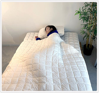 ウールふとんに特化することでウールの素材の良さを十二分に活かした製品をご提案いたします。こちらの掛けふとんは睡眠中に出る汗の大部分を吸い尽くし、表面はべとつかずいつもサラッとしています。ウールが暖かい繊維であるばかりではなく、夏は涼しいということには矛盾を感じますが、これがウールの特性なのです。