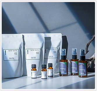 厳選したオーガニックブレンド精油を使用した、アロマミスト・バスソルト・エッセンシャルオイルのセットです。リラックスしたいときは「フローラル&ビター」、明るい気分になりたいときは「シトラス&フローラル」、心を落ち着けたい時は「ウッディ&クール」と、気分に合わせて選べる3種の香り。