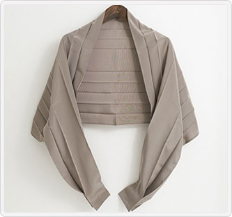 小さなポーチに収納できるほど軽量でコンパクトながら、おしゃれなプリーツ加工を施したボレロです。(国内特許取得済)