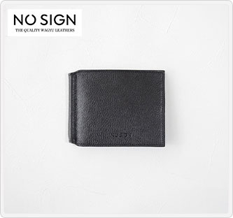 “NO SIGN” は、日本古来の和牛種が紡ぎ出す「WAGYU LEATHER」の気品ある手触りを大切にした、上質な暮らしを愉しむ大人のためのレザーグッズブランドです。紙幣を中央のクリップで挟む方式のマネークリップ。スリムでコンパクトな設計で、スーツのポケットに収まりやすいサイズ感です。